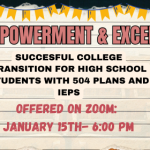 January 12, 2026 - January 14, 2026Empower & Excel: Successful College Transition for High School Students with 504 Plans & IEPs