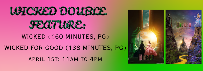 Wicked (160 minutes, PG) & Wicked For Good (138 Minutes, PG)